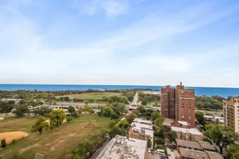 Wake up to beautiful lake views in this rare high floor east-facing unit at 4343 N Clarendon. With floor-to-ceiling windows throughout, this home is filled with natural light and offers a front-row seat to Chicago's lakefront - without the noise of living right on Lake Shore Drive. The kitchen features modern white cabinetry, contemporary countertops, stainless steel appliances, and a breakfast bar that opens into the living area - a great setup for everyday living or hosting friends. The bedroom offers more floor-to-ceiling windows and views, plus rich dark hardwood flooring runs throughout. Central A/C and heating adds comfort and convenience. Enjoy full-service living with building amenities that include a gym, outdoor pool, roof deck, dog run, laundry facilities, and 24-hour door staff. The building is dog-friendly and well-loved by residents. Whether you're a first-time buyer looking for a move-in-ready home or an investor adding to your portfolio, this unit checks the right boxes. Heated garage self parking is usually available for rent through other unit owners for approximately $250 a month. For investors, this unit's monthly rental price is projected around $2,150. Located in a highly desirable area, this a great property for you!