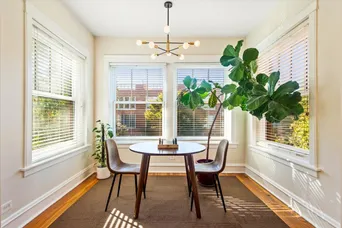 Penthouse goals-realized. Extra-wide and super bright 1700 sq ft top-floor home in an intimate 6-unit, center-entrance walk-up in historic Sheridan Park. Luxury, light, and character come together perfectly-plus your own private garage spot! The 19-ft-wide living room features a west-facing sunroom, ideal for morning coffee or a cozy reading nook. A well-positioned kitchen sits between the formal dining room and tree-top back deck, creating a natural flow for entertaining. This classic flat offers 3 spacious bedrooms, two comfortably fitting king beds. The third bedroom doubles as a home office, complete with ensuite bath and in-unit washer/dryer. Downstairs, enjoy your private garage and basement with 10x10 storage, workout area, woodshop, and additional storage. Walk to Andersonville, Wrigley Field, the CTA Red & Brown Lines, Metra, and the lakefront. Exceptionally well-run building with healthy reserves and consistent maintenance. Long-term, happy ownership shows-20 years and counting. Please see FAQ sheet under additional info tab for ages and upgrades.